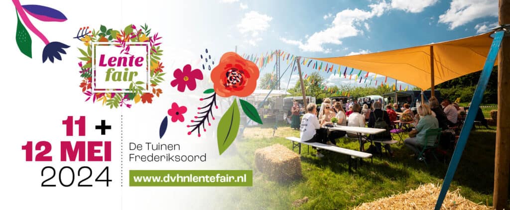 Op 11 en 12 mei, in het Moederdagweekend, is het weer tijd voor de populaire Lentefair in de Tuinen in Frederiksoord. In de bloeiende boomgaard ontdek je meer dan 100 deelnemers, shop je de leukste cadeaus, dans je op livemuziek, beleef je activiteiten en geniet je van foodtrucks. Zet de Lentefair dus maar in je agenda!